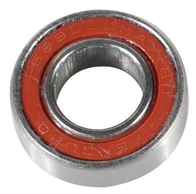 688 LLU MAX – MAX-Type, ABEC-3 radial suspension bearing – – 8mm x 16mm x 5mm – Enduro Bearings pioneered MAX type bearings over 20 years ago for bicycles to address the challenges associated with mountain bike pivots. MAX-type bearings provide 35-40% more load capacity than standard radial bearings by utilizing a special design where the maximum number of balls are inserted into the bearing, via a custom ground slot in the races. The additional balls, combined with deep race grooves in these bearings providing greater lateral support for the twisting and multi-directional forces associated with mountain bike pivots. This ABEC-3 bearing features deep-groove design races, with Grade 10 balls and full-contact, double-lip, labyrinth (LLU) seals for maximum protection against the elements, while keeping the 90% fill of Almagard extra high pressure grease inside. This bearing has been used as a suspension pivot bearing by a number of bicycle brands. The Enduro line of bearings are available in high-carbon chromium steel, 440C stainless steel, ceramic-hybrid and XD-15 with ceramic or stainless balls. Our bearings are always engineered with deepest groove races possible to accommodate the largest balls and feature dual-lip seals that ride in a micro-groove creating a full labyrinth to provide superior protection against the elements. Static load – 268lbf / 1.19kN Weight – 3.9g –
